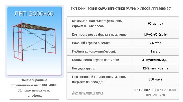 Технически универсальные рамные леса ЛРП 2000-60